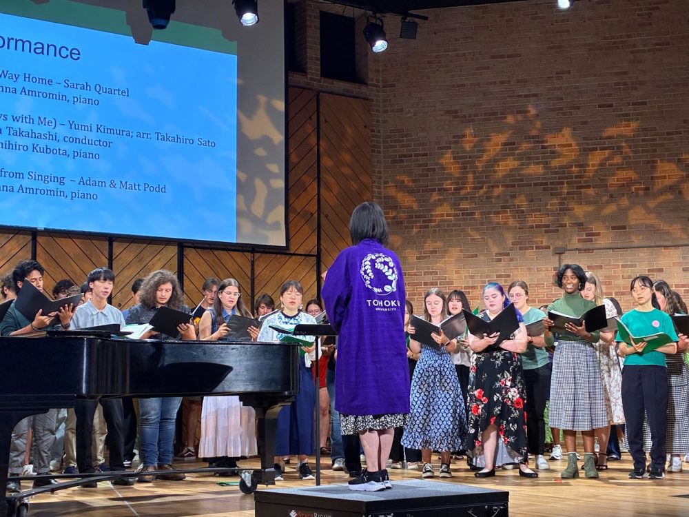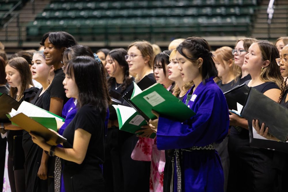The Office of Intercultural and Educational Experiences, in collaboration with the UNC Charlotte’s Women’s Choir, led by Professor Ginger Wyrick, recently concluded its fifth cohort of the highly successful #Music! Connection through Notes program. The fruit of a long-standing partnership with Tohoku University, this program brings together students from both institutions through the shared love of music. Over the course of six weeks, 64 UNC Charlotte students and 23 Tohoku University students interacted virtually and in person through Zoom pre-residency meetings, online discussion boards, and in-person rehearsals, culminating in a joint performance with songs in English and Japanese.