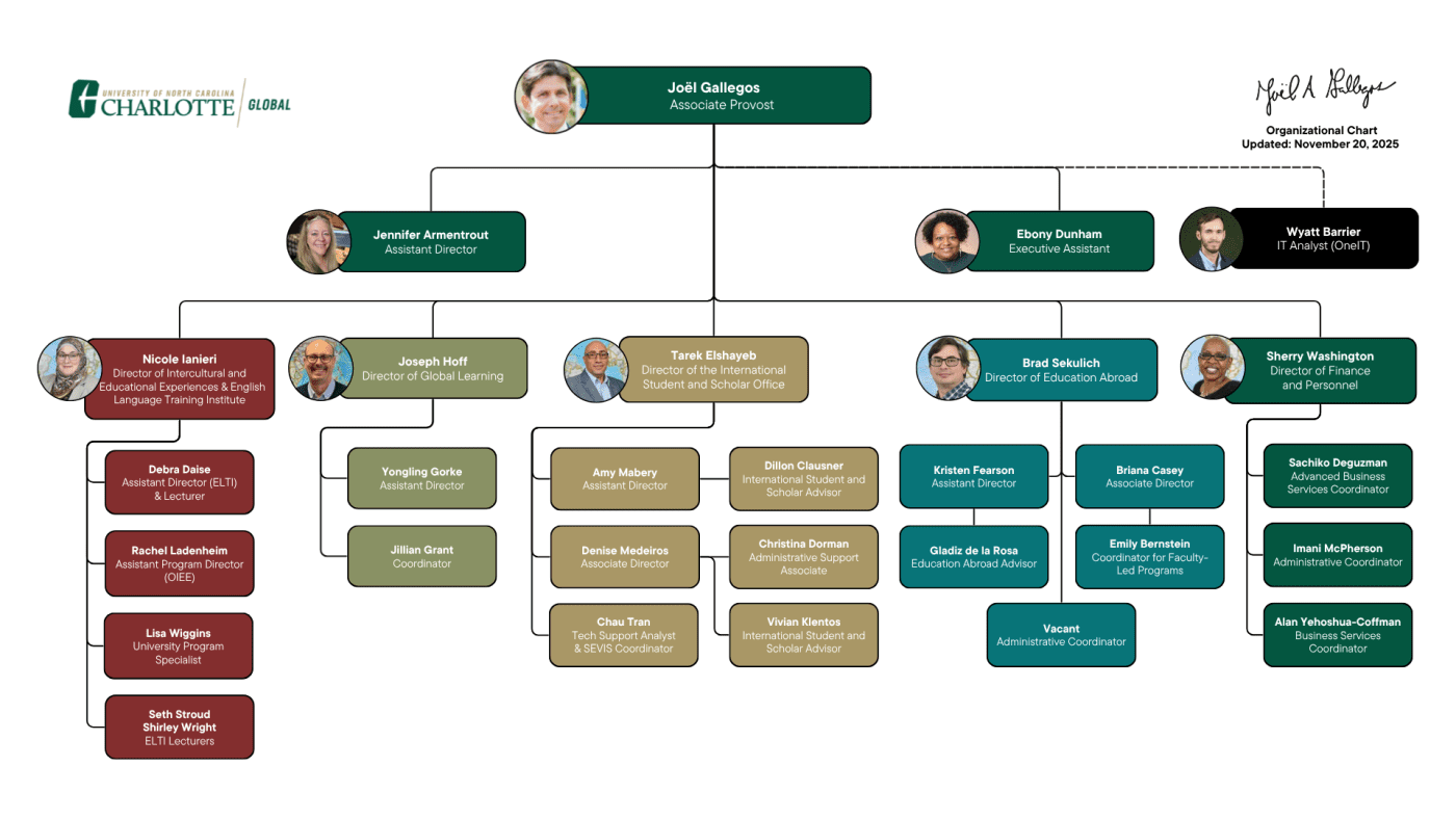 - The Charlotte Global Administration is the lead administrative operations unit and coordinates the campus-wide internationalization efforts and leadership of Charlotte Global’s integrated units.